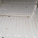 Achja, die Türen……da hatte der Vorbesitzer mittels  viel Sikaflex oben eine MDF Platte eingeklebt. Und da Sikaflex entfernen echt mies ist, kam der Lack auch nicht unbeschädigt davon.
