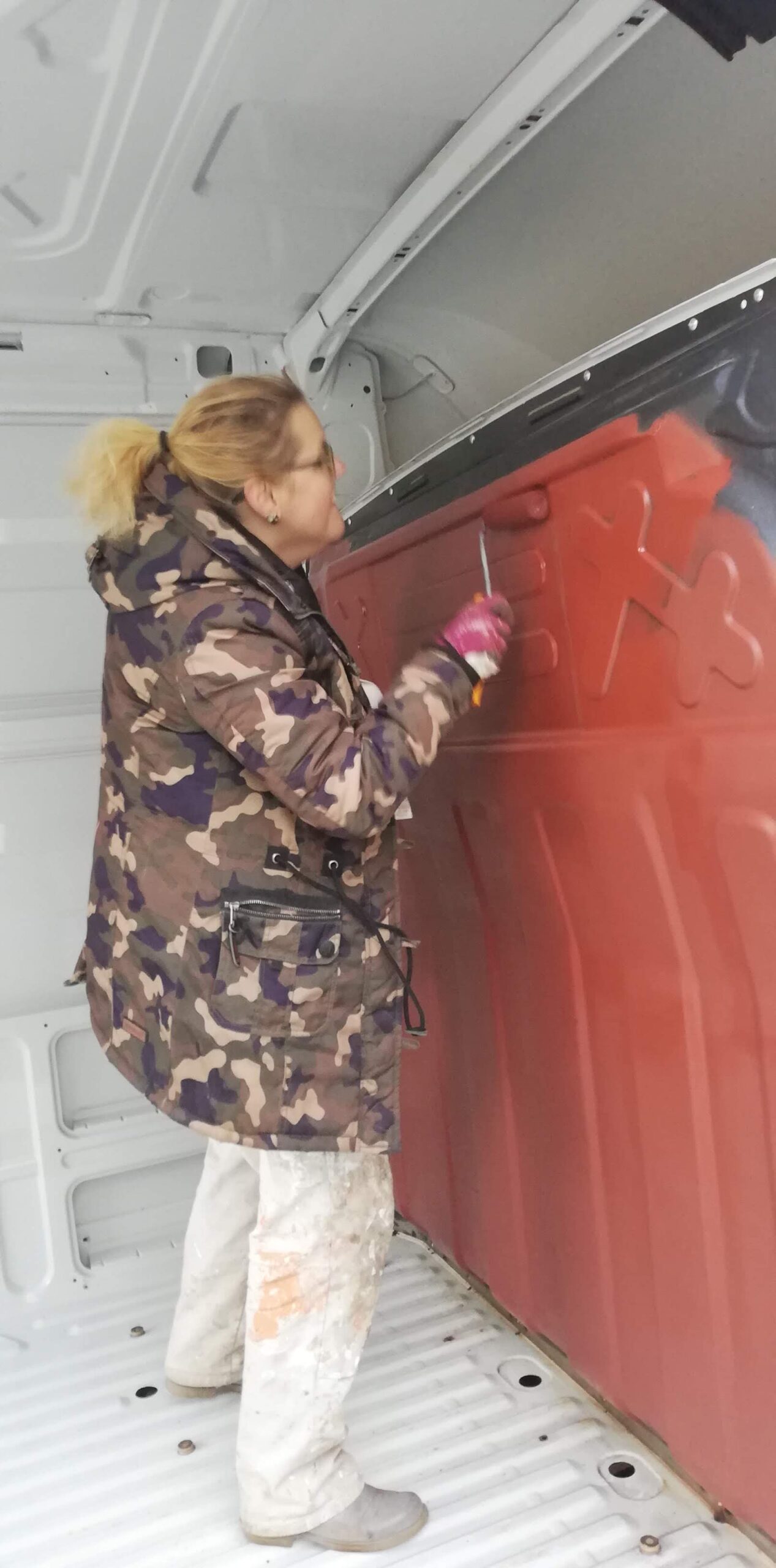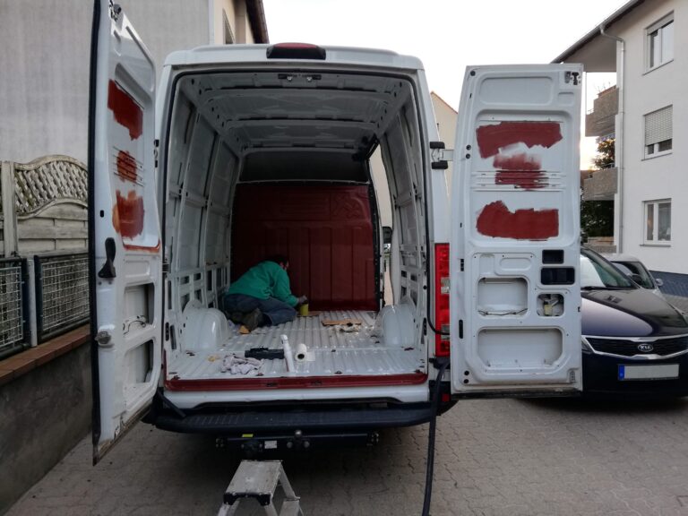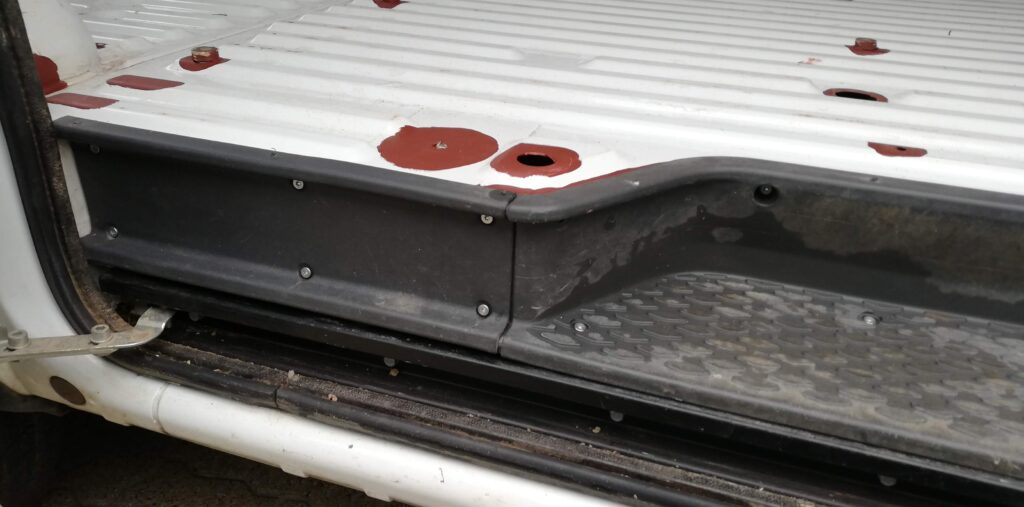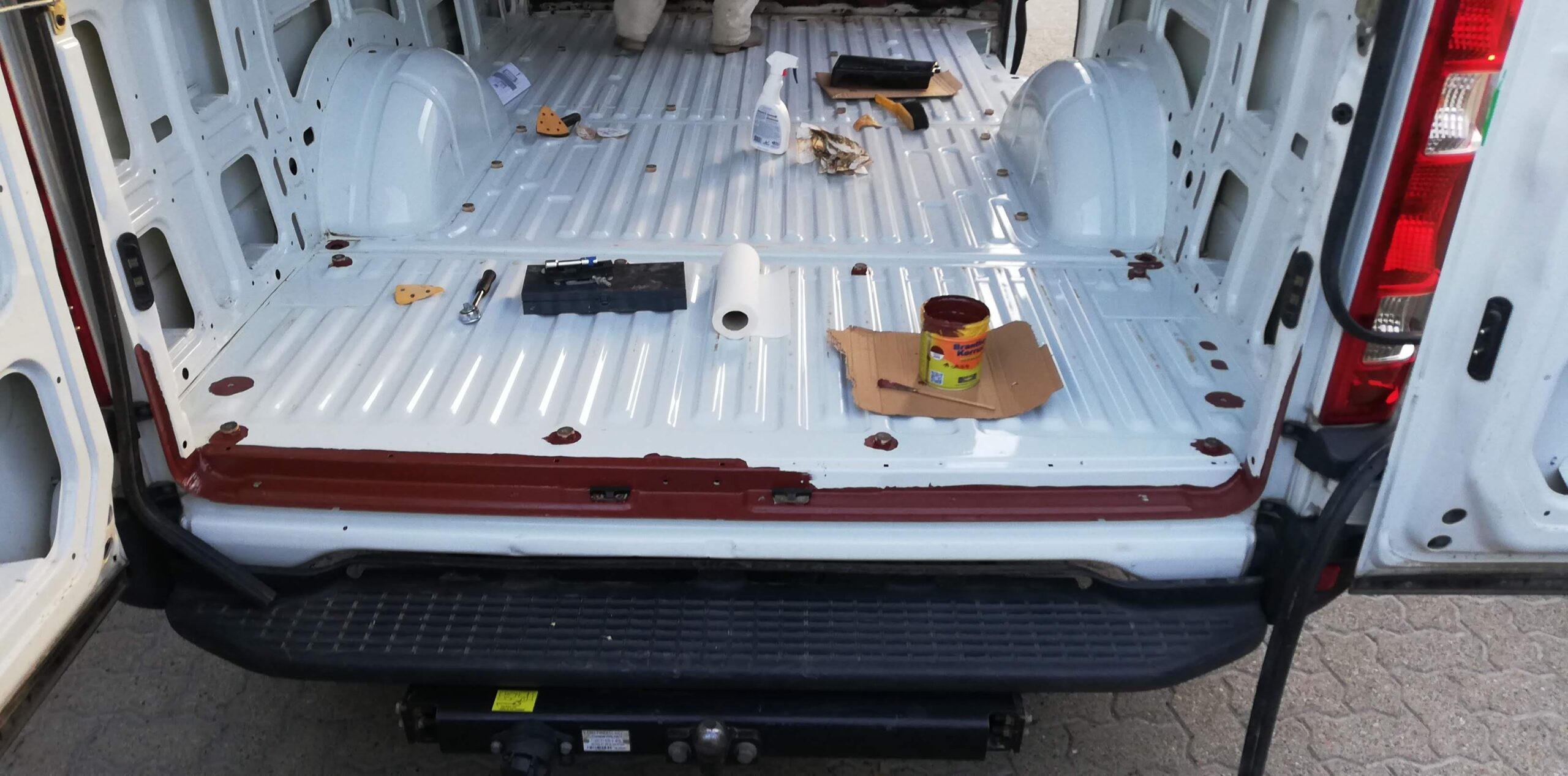 Während Steffi sich um das Blech zwischen Lade- und  Fahrerraum kümmerte – keine Sorge es war nicht so verrostet das man es hätte komplett behandeln müssen – aber Zitat: „sie hatte g´rad´ so ´nen flow…“, habe Türen & Co. behandelt.